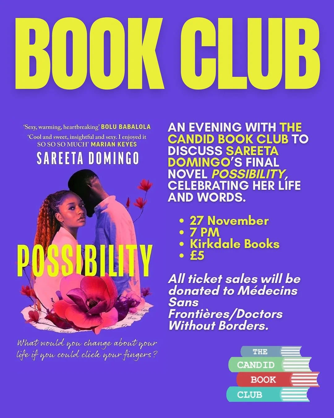 Join The Candid Book Club at Kirkdale Bookshop for an evening in which we discuss Sareeta Domingo's final novel before she passed away, Possibility.